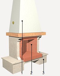 Fogão de sala "in situ", composto de lareira aberta de tijolo cerâmico refractário assente com argamassa refractária Webertec Foc "WEBER", tipo G, segundo EN 998-2 e chaminé de tijolo cerâmico furado revestido de gesso. | ||
